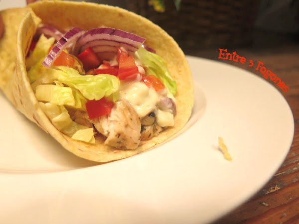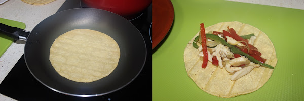 Y aquí os dejo otra forma de rellenar las fajitas o los tacos, muy rica del blog Entre 3 fogones. Con pollo y vegetales.