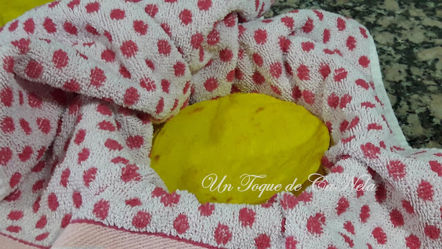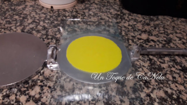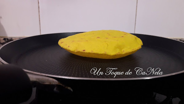 Poner en sartén caliente y al cabo de 1 o 2 minutos, se inflará, es el momento de darle la vuelta y hacer lo mismo por el otro lado.