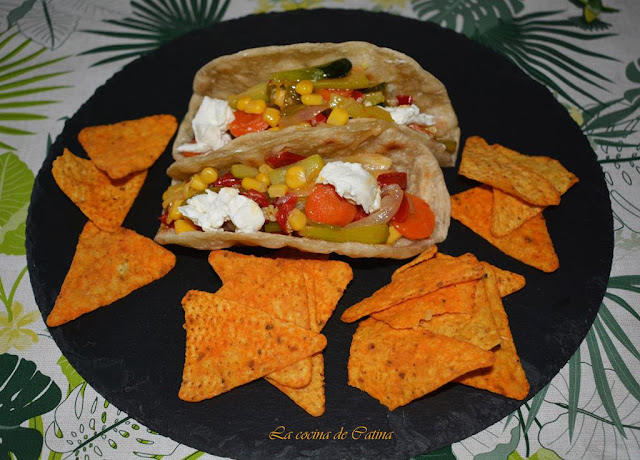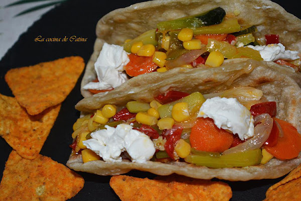 Hoy tenemos el último desafío de la temporada y una vez mas las Boss han sido super buenas exigiendo un desafío facilito. Los tacos, que la única complicación era que las tortitas estuvieran comestibles y las mías salieron bien buenas. Los tacos son muy parecidos a las fajitas y los burritos, unas tortillas que podemos rellenar de una gran variedad de cosas. Yo he elegido un relleno vegetariano que resultó estar buenísimo. Como sabréis las tortillas las venden en todos los supermercado, y el relleno lo puedes tener preparado con antelación y en pocos minutos tienes una cena improvisada que te hará quedar muy bien.