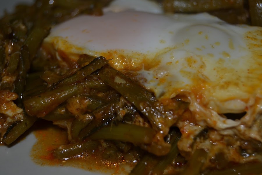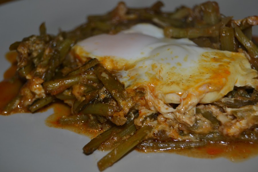 Por ultimo cuajamos los huevos encima de las tagarninas dejando la yema semi liquida y servimos.