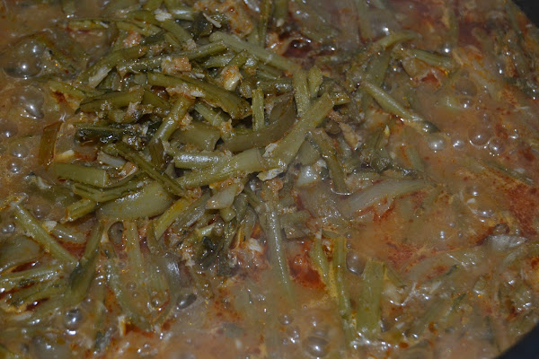 Removemos bien y le añadimos el agua del plato también.