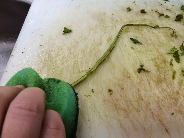 Para ello nos ayudamos de un estropajo nuevo con el que iremos repasando de una en una todos los bordes para que no queden restos de las hojas ya que son espinosas.