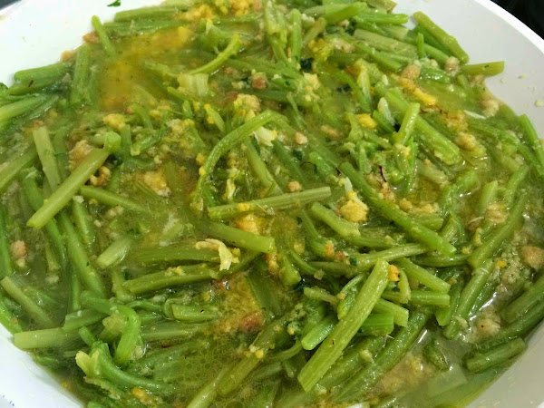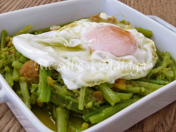 Hay personas que les gusta incorporar los huevos junto con las tagarninas al final de la cocción para que cuajen aunque personalmente prefiero freírlos aparte.
