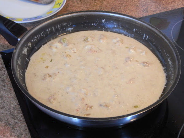A continuación se añade la leche evaporada (o si preferís podéis utilizar nata (crema de leche) para cocinar pero tiene más grasa), sal y pimienta blanca.
