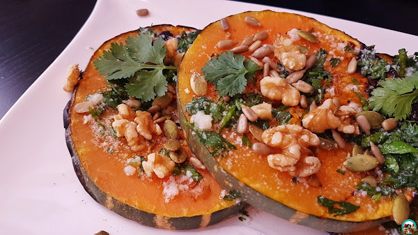 La calabaza asada con el maridado queda muy sabrosa, igualmente la puedes comer sola o como entrante.
