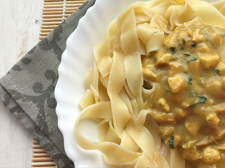 Tagliatelle con pollo al curry