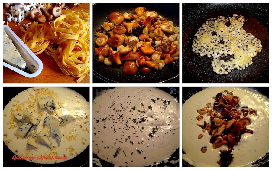 Hoy el plato va de setas y queso con pasta. La pasta es para llenar; la verdadera protagonista es la salsita. Es una receta para principiantes, muy facilona. Hay algunos pequeños trucos a tener en cuenta para que quede presentable. También es importante equilibrar los ingredientes de la salsa para que ésta no espese demasiado al cuajar.