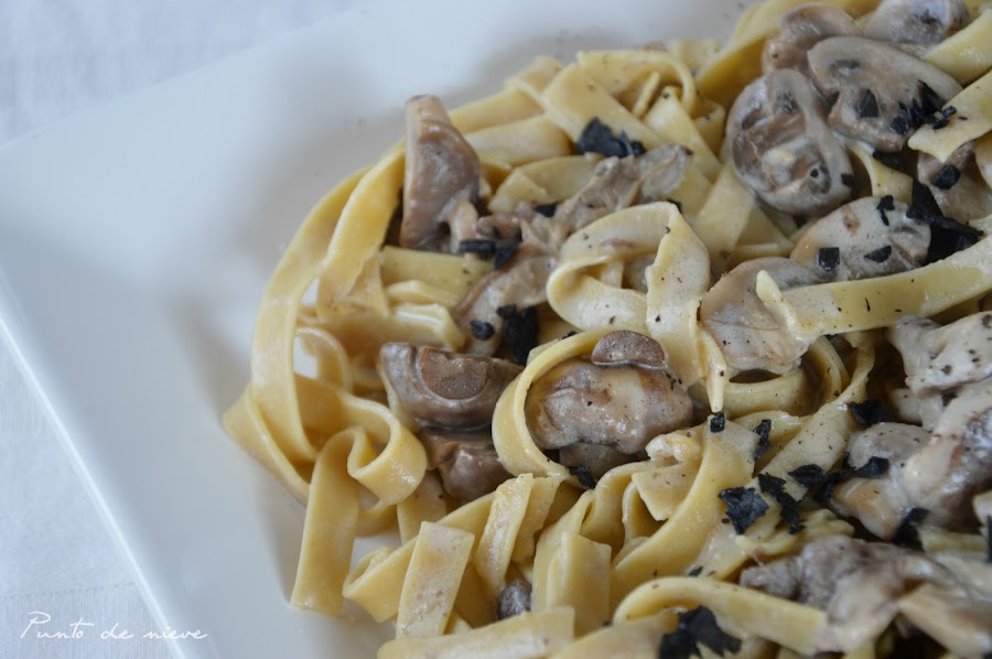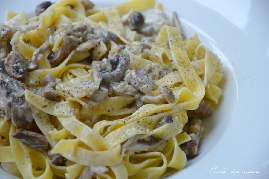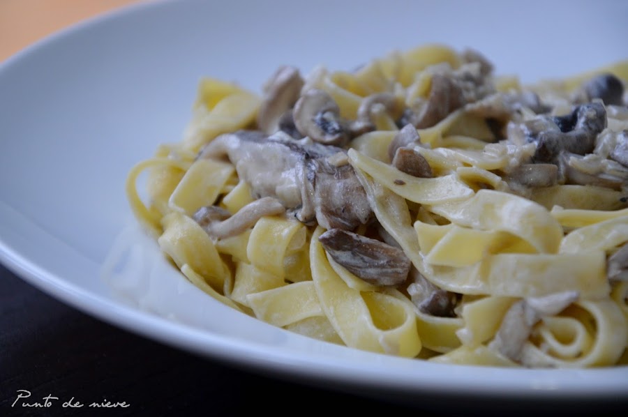 Añadimos la pasta a las setas, mezclamos y presentamos!