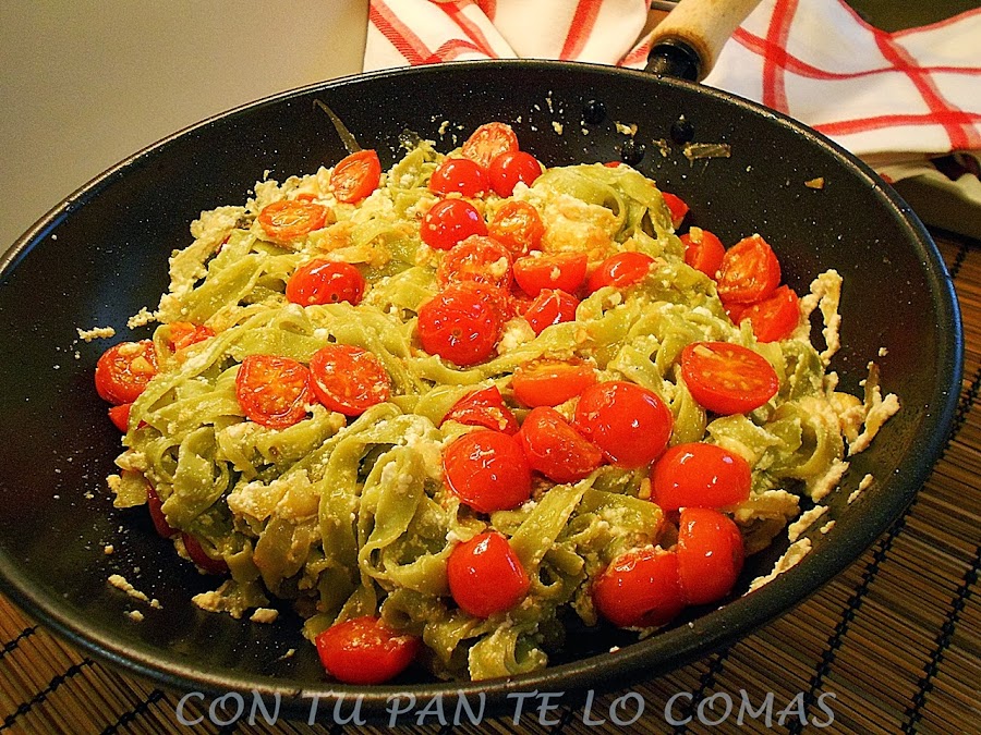 8. Para terminar incorporamos los tomatitos a la pasta y ya lo tenemos listo! El que quiera le puede añadir queso rallado. Tiene buena pinta, no?