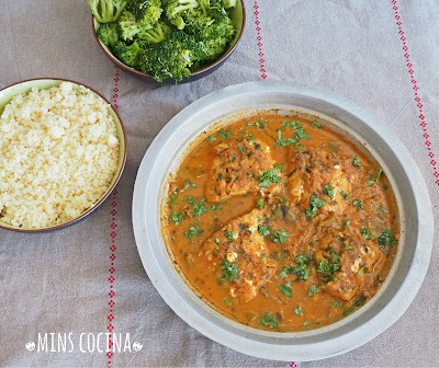 Los que me sigáis hace tiempo ya sabéis lo que me gusta usar el tajín. Me encanta como queda la comida. Jugosa y con todo el sabor de los ingredientes potenciado. Además, resulta que es cocina sana ya que, al fin y al cabo, es un tipo de cocina al vapor. En fin, que no necesito excusas para utilizarlo y menos ahora que tengo uno metálico que utilizo cuando voy con prisas, ya que no requiere remojarlo previamente como el de barro y además la comida se cocina más rápido. Si os gusta cocinar con tajín, aunque no es el original, os recomiendo tener también uno metálico para las prisas. En esta ocasión tenía unos lomos de bacalao y me inventé sobre la marcha un plato que quedó realmente delicioso. Me encanta el toque que dieron el comino por un lado y el pimentón ahumado por otro. Un tajín diferente y nada tradicional, muy original, que os va a hacer chuparos los dedos.
