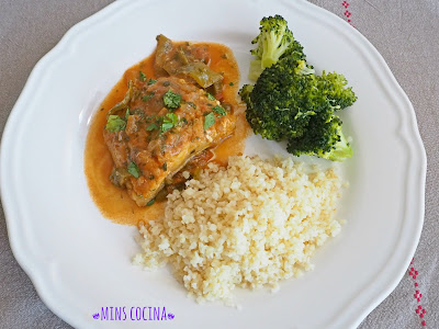 - Pasado el tiempo, comprobamos que el pescado está a nuestro gusto, apagamos, espolvoreamos el resto del cilantro fresco picado por encima y servimos inmediatamente acompañado de pan o como hice yo en esta ocasión, de bulgur. También queda muy rico con arroz.