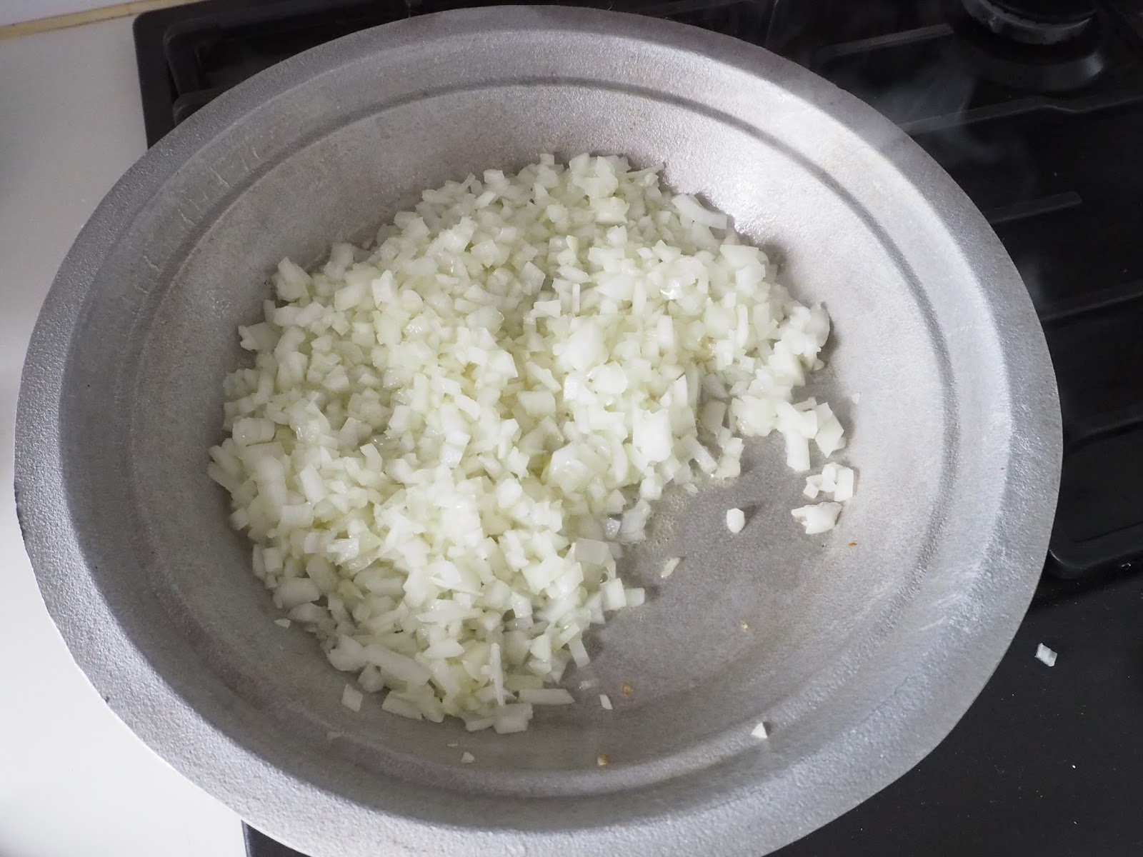 - Calentamos un poco de aceite en la base del tajín y ponemos a dorar la cebolla.