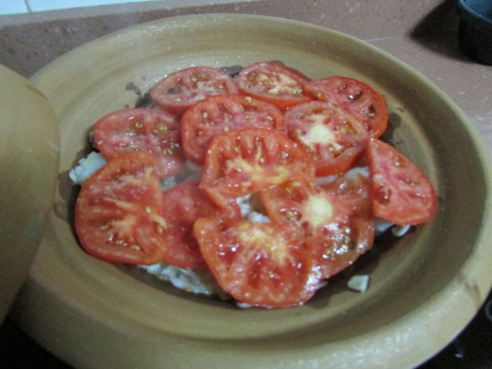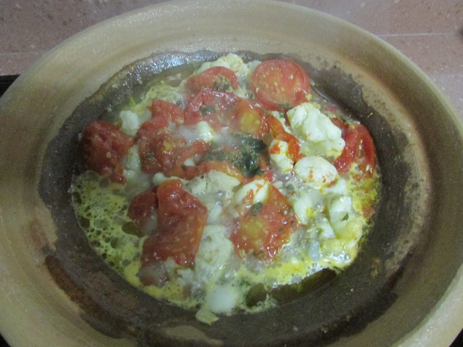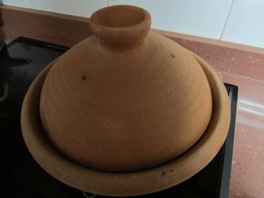 Lo he preparado en el Tajin de barro, pero se puede hacer en cualquier cazuela. El truco de este plato es que se ponen los ingredientes, se tapa el Tajin o la cazuela y no se mueven.