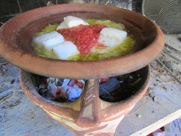 Lo he cocinado en el Tajine de barro y con carbón, aunque lo que le ha dado un aroma y un sabor increíblemente fantástico ha sido que para encender el carbón he utilizado unas ramas de Romero secas y con la humareda que se ha montado imagina el sabor que ha cogido, y me repito está ¡¡¡Delicioso!!!