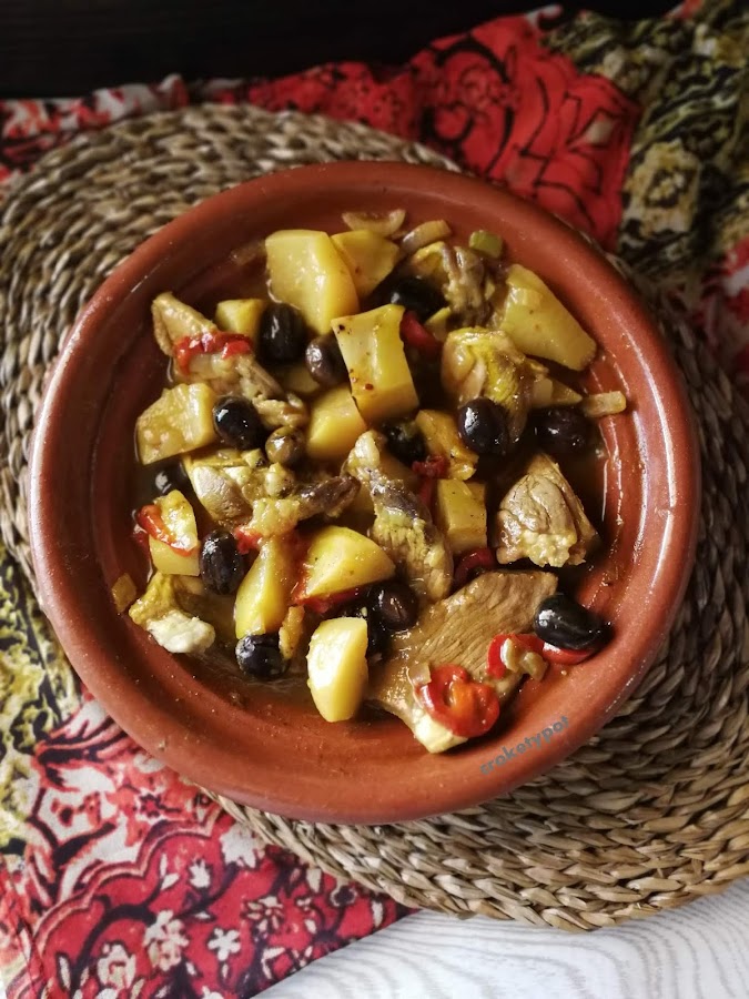 Lo que llevamos de año y ¡todavía no había publicado un tajine! , por eso al proponer en el reto alfabeto salado un plato con cordero y cúrcuma, lo primero en lo que pensé fue en este delicioso plato marroquí de cordero, muy sencillo con el que disfrutaréis como si estuvierais en el Magreb. Esta receta de cordero tajine con aceitunas, pimientos y papas es un plato es absolutamente sabroso.