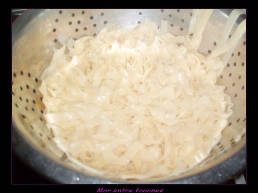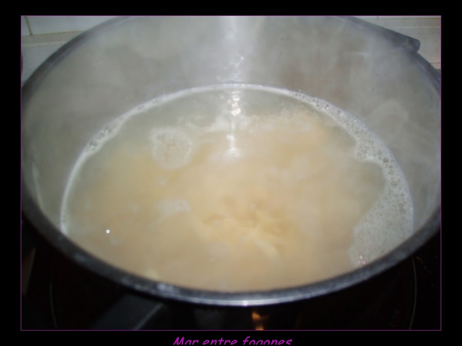 Cuando está hirviendo echamos la pasta dejamos 3 minutos y escurrimos.