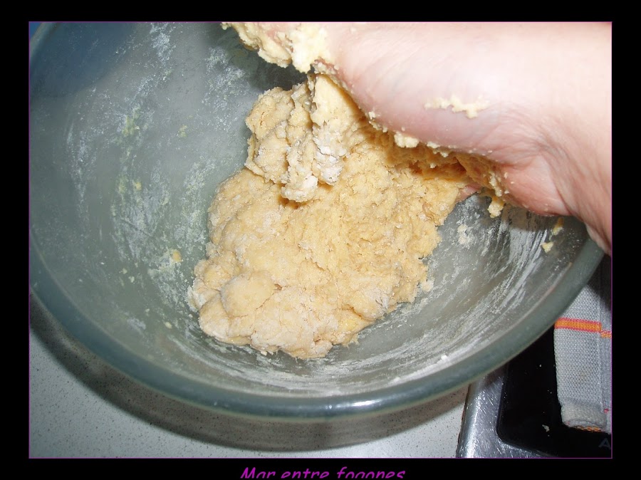 Cuando esta mezclado amasamos con la mano hasta hacer una masa compacta.