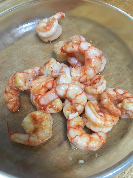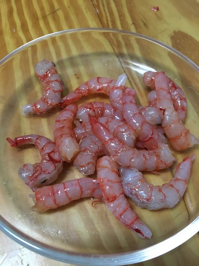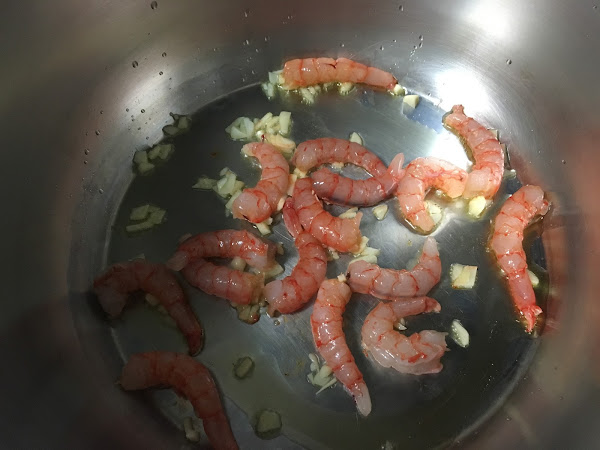 Lo vamos removiendo para que las gambas se doren y al minuto y medio o dos minutos retiramos las gambas y las reservamos.