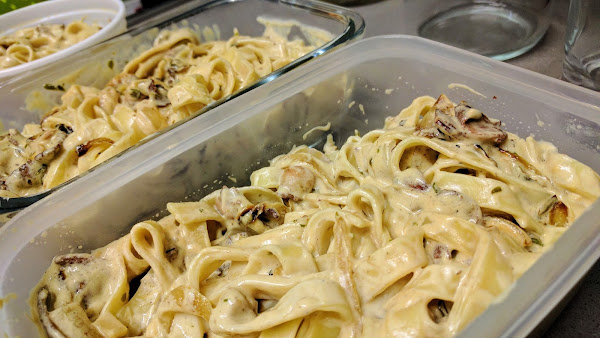 ¡táper deluxe para mañana! Nuestra salsa carbonara con un toque espectacular a trufa. Ya sabéis la debilidad que tengo últimamente con la trufa y me traen regalos para experimente. Una receta perfecta para táper o para hacer si queréis quedar bien con los amigos. La podéis usar tanto para pasta o como en nuestra antigua receta para pizza o patatas al horno. Y además he quitado los champiñones de la receta, ya que a muchos no os gustan. Al final del post os cuento como usarla para lo demás.