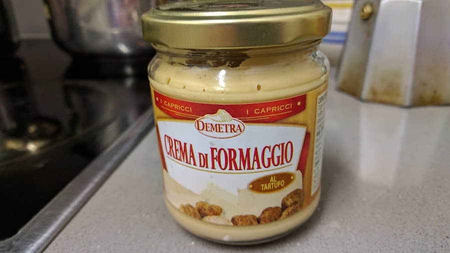 Queso rallado al gusto o una cuchara de crema de queso con trufa.
