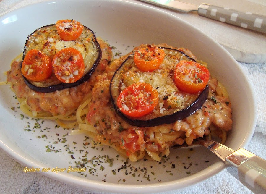 Se puede sustituir la bechamel por más salsa de tomate, sin embargo os aconsejo que probéis con bechamel, aunque es un poco más calórica la mezcla es una delicia.
