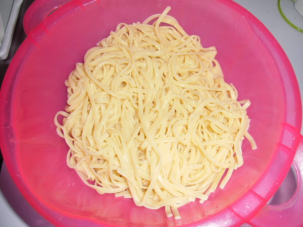 Anteriormente hemos sacado los tallarines del agua y escurridos complétamente