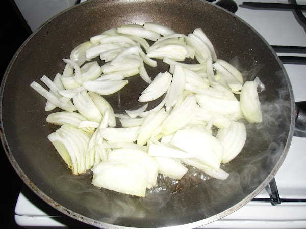 Cortamos toda la verdura en juliana y en una sartén con un poco de aceite caliente vamos rehogando la cebolla
