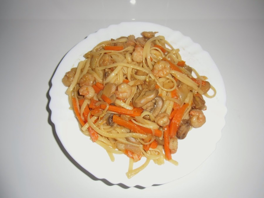 Ya solo falta incorporar los tallarines, dar unas vueltas a fuego medio para que se mezclen los sabores y emplatar.