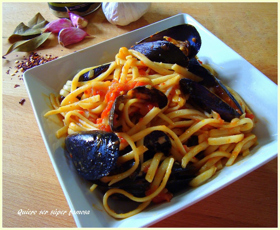 Imprescindible que los mejillones sean muy frescos y el caldo de pescado sustancioso. Una buena pasta algo gruesa para que la salsa se adhiera a ella y mucho mimo en su elaboración harán de este sencillo plato un manjar...