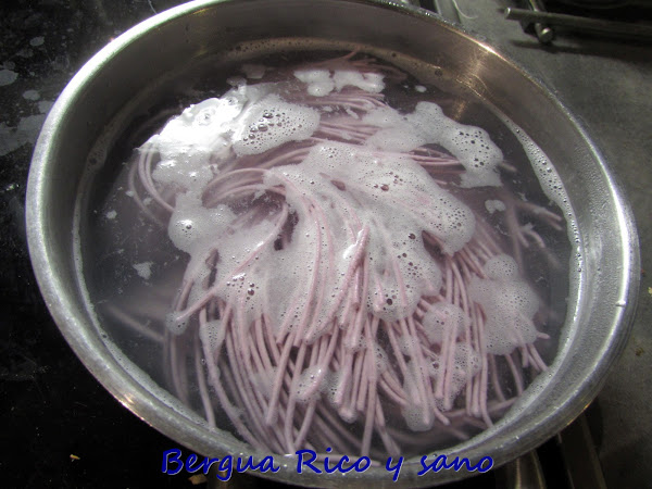 4. Mientras tanto, cocemos los tallarines. Seguiremos las instrucciones del paquete, pero si son frescos como los míos, no tardarán más de 3-4 minutos en agua ya hirviendo.