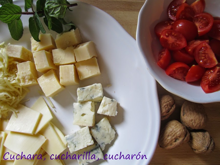 - Quesos cortados a dados o rallados: emmental, gorgonzola, chedar y gouda