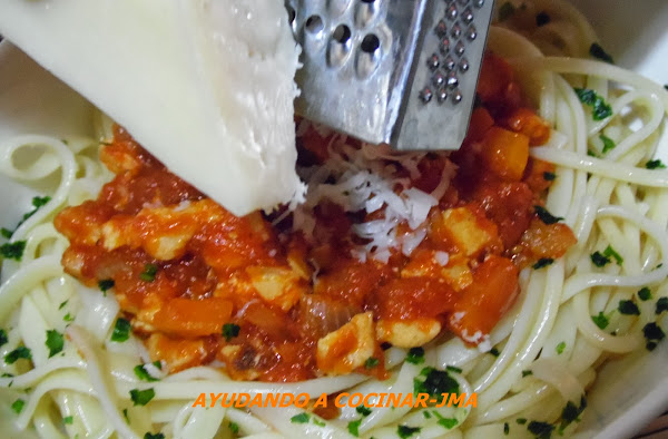 Servir en los platos con un poco de queso rallado y una pizca de perejil