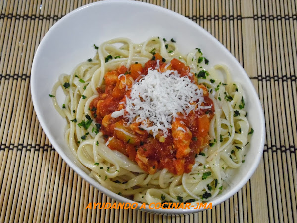Este plato de pasta, es completo e ideal para deportistas, así que he decidido compartir esta receta precisamente hoy, con la idea de dedicarla especialmente a mi equipo del II Reto Xtremfit y pensando en la comida previa a la competición del próximo martes. ¡Animo chicos¡ tenemos que estar preparados y con esta comida ideal para una pre-competición, seguro que lo conseguimos.