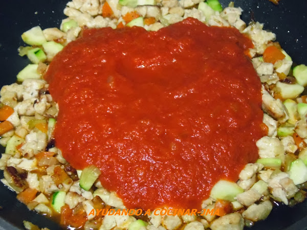 incorporarla a la sartén donde estamos rehogando la cebolla, el ajo y la zanahoria,
