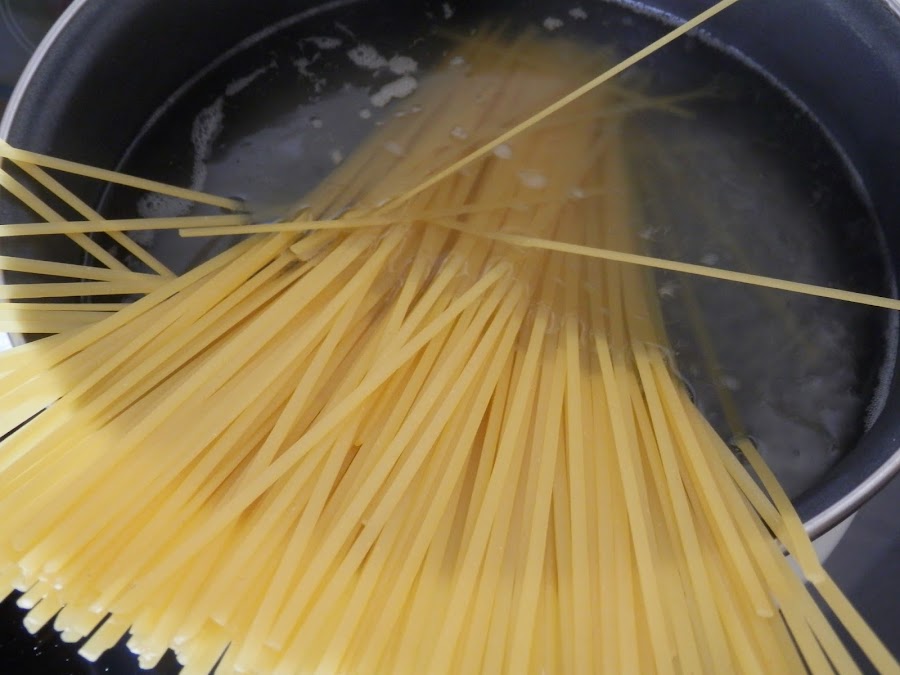 No pondremos toda la cocción de los tallarines, ya que terminaremos la cocción en la sartén cuando juntemos toda la preparación.