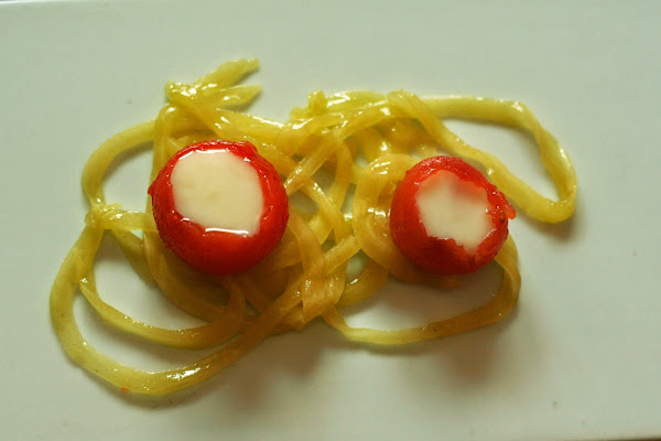 TALLARINES DE AOVE CON TOMATES Y QUESO