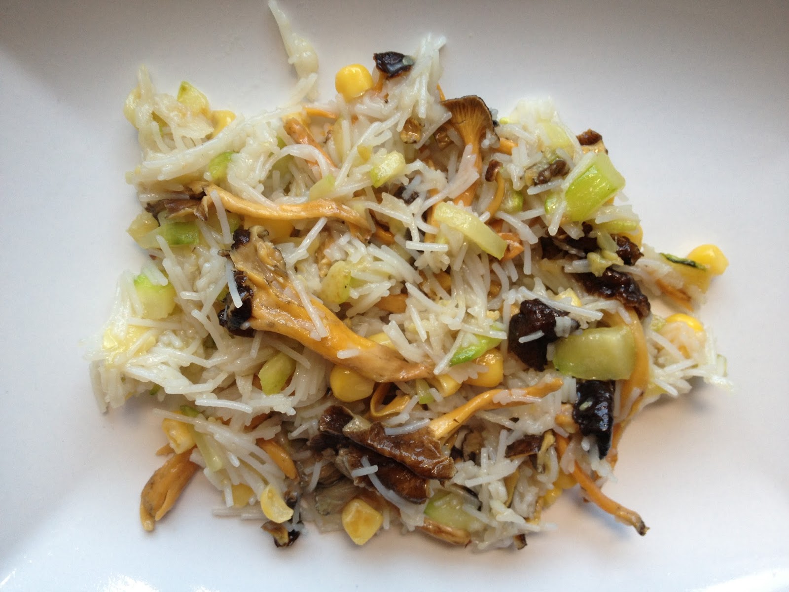 Hoy vamos a aprovechar unos tallarines de arroz, que a mí personalmente me gustan mas que los de pasta y los vamos a enriquecer con este tipo de seta, añadiéndole después calabacin y maíz, que le dará ese toque tan especial y delicado. Su resultado, espectacular.