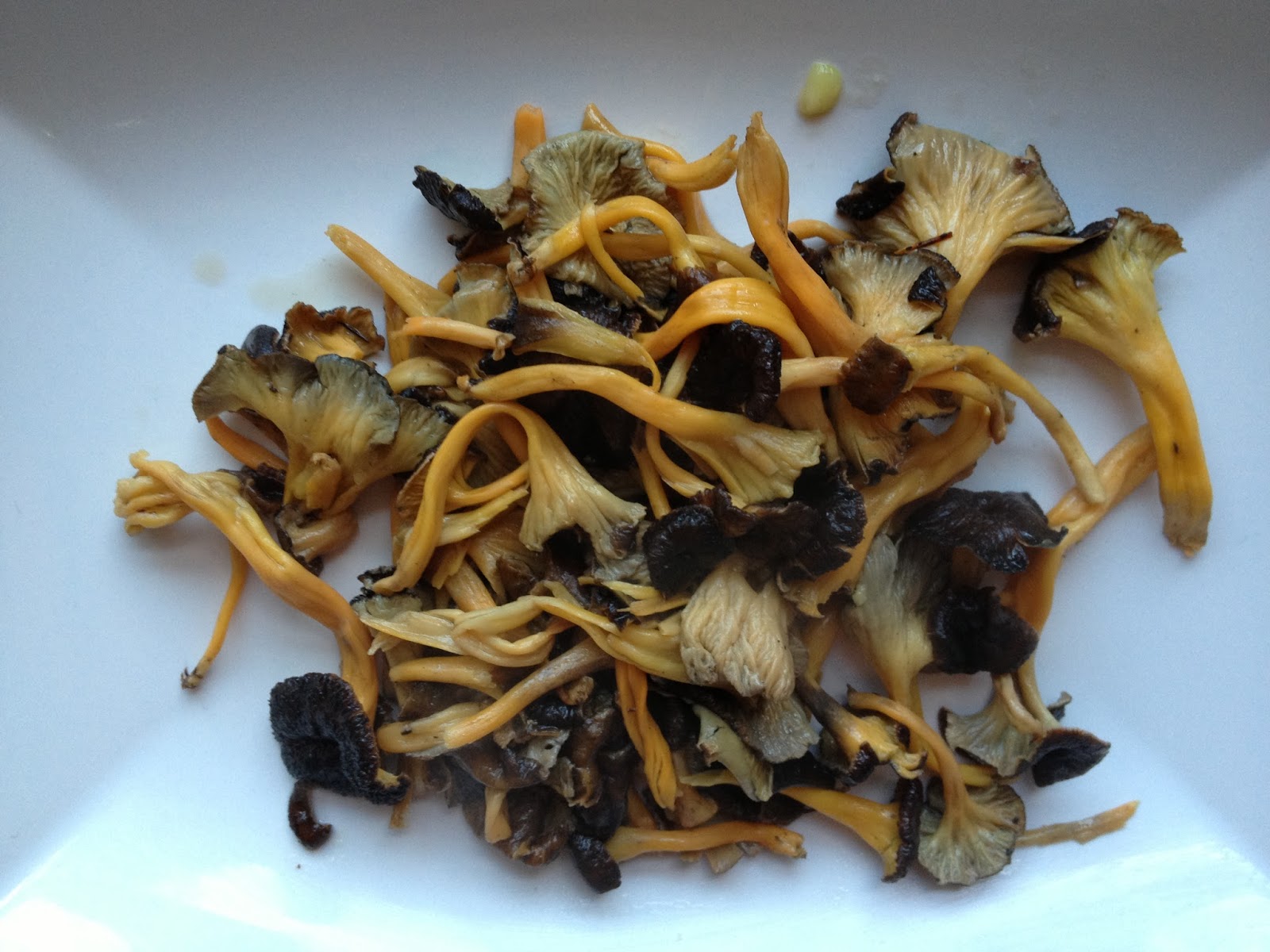 5 Las setas ya estarán cocinadas también, las retiramos a un plato.