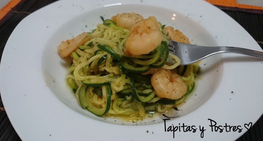 El invento solo lo he probado con calabacín, se puede usar también con zanahoria e incluso con patata. El secreto está en usar vegetales "largos" o cortarlos de manera alargada para poder sacar las tiras.