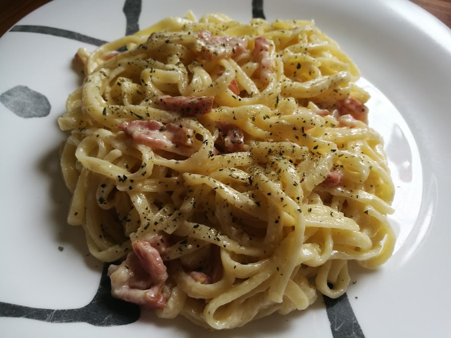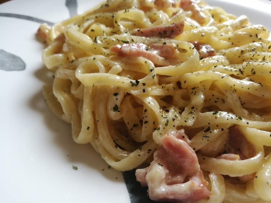 - Mezclamos los tallarines con la salsa y servimos