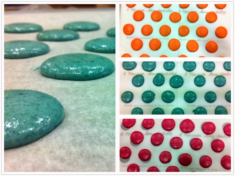 Aquí fotos del horneado de los macarons, de terminaciones de sabores y la parte más agradecida que es el rellenar los macarons.