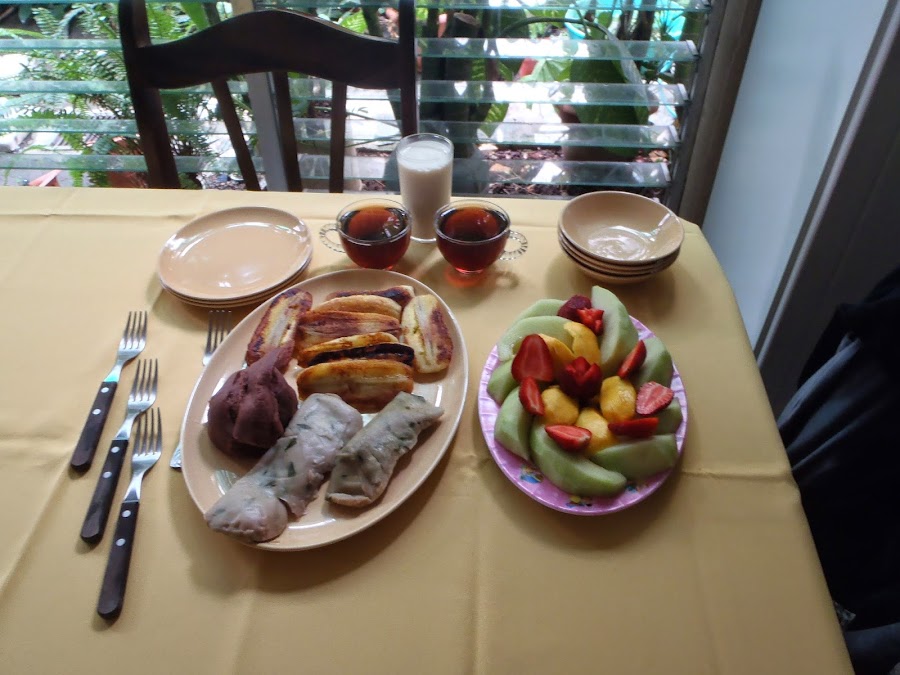 En este caso los tamales de chipilín fueron acompañados de frijolitos refritos, guineos majonchos fritos, ensalada de frutas y un rico café negro o porqué no??? un vasito de leche.