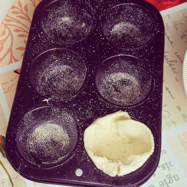 Untamos de mantequilla unos moldes de horno para hacer magdalenas y los espolvoreamos con pan rallado. Introducimos con cuidado cada rebanada de pan y la pintamos en los bordes con mantequilla.