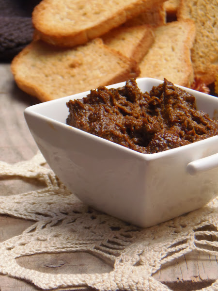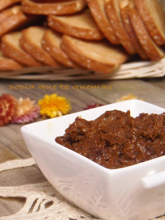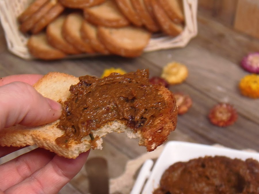 Es una versión de la clásica tapenade de aceitunas negras, pero para mi gusto mejorada por el sabor de los tomates secos y la albahaca, un aperitivo buenísimo.