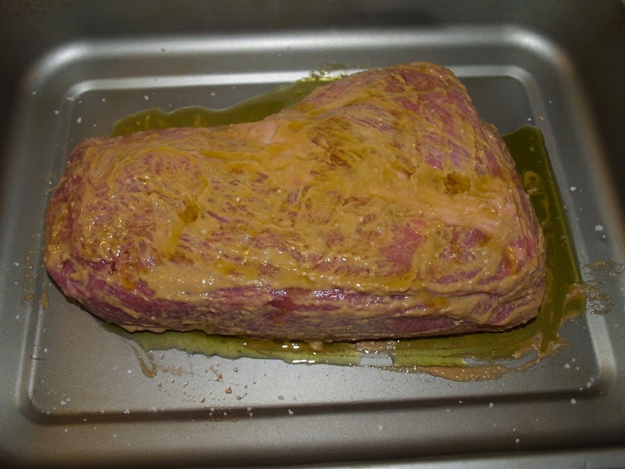 - Empezamos poniendo un poso de sal a la carne y rebozándola con mostaza. Esto dará un sabor fantástico a la carne, ya veréis!