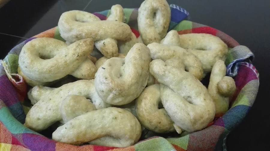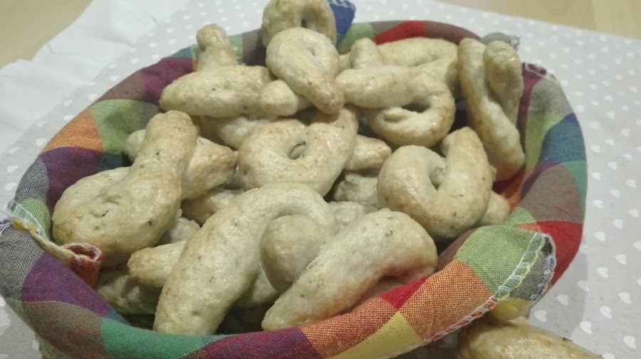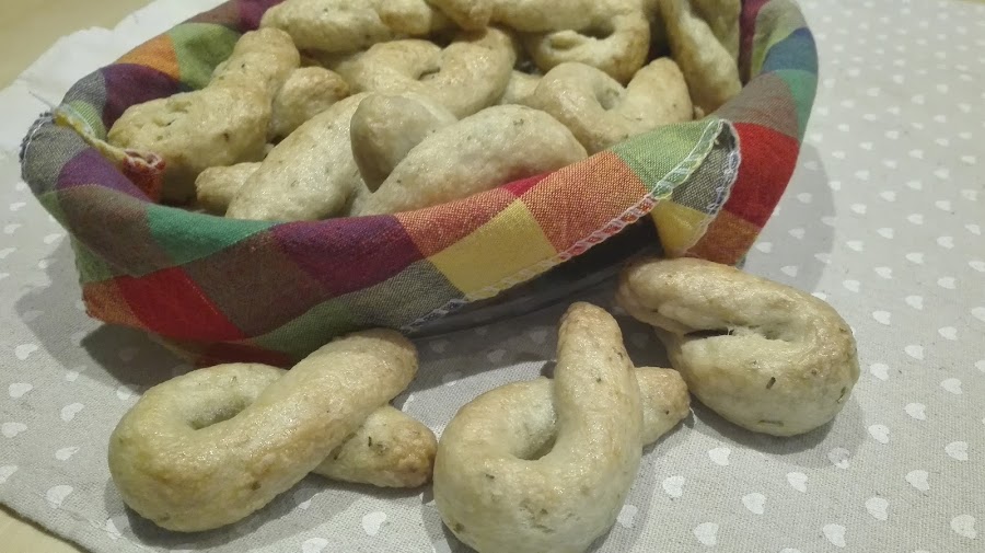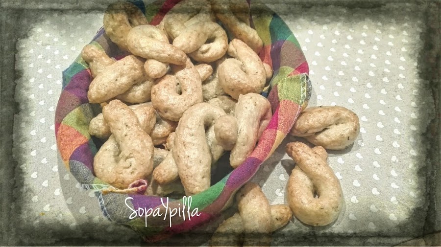 Hoy me atreví con esta receta, sacada del libro de El Comidista...resulta que la receta data del año 1400, del sur de Italia. Se tenían siempre en casa, para cuando llegaran invitados se servía con un vino, para mojar...si sisisi se mojaban los tarallis en el vino.