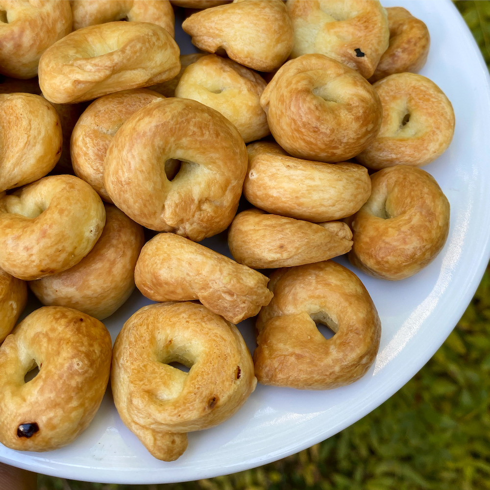 Hacer una corona con la harina y la sal.En el centro de la fuente verter el aceite y mezclar hasta que quede como una especie de arenado.Incorporar el vino y agua.Amasar hasta obtener una mezcla completamente homogénea.Realizar tiras largas de menos de 1 cm de espesor y de unos 7/8 cm de largo.Tomar los extremos, unir entre ambos para formar las rosquitas.En una olla con sal y agua hirviendo colocar los taralli, cuando suban a la superficie retirar del agua y colocar en una placa y dejar que se sequen.Una vez seco colocar en una placa aceitada o con papel manteca y cocinar en horno a 200 ºC durante 20 minutos o hasta que estén dorados.Dejar enfriar.Listo! A disfrutar!