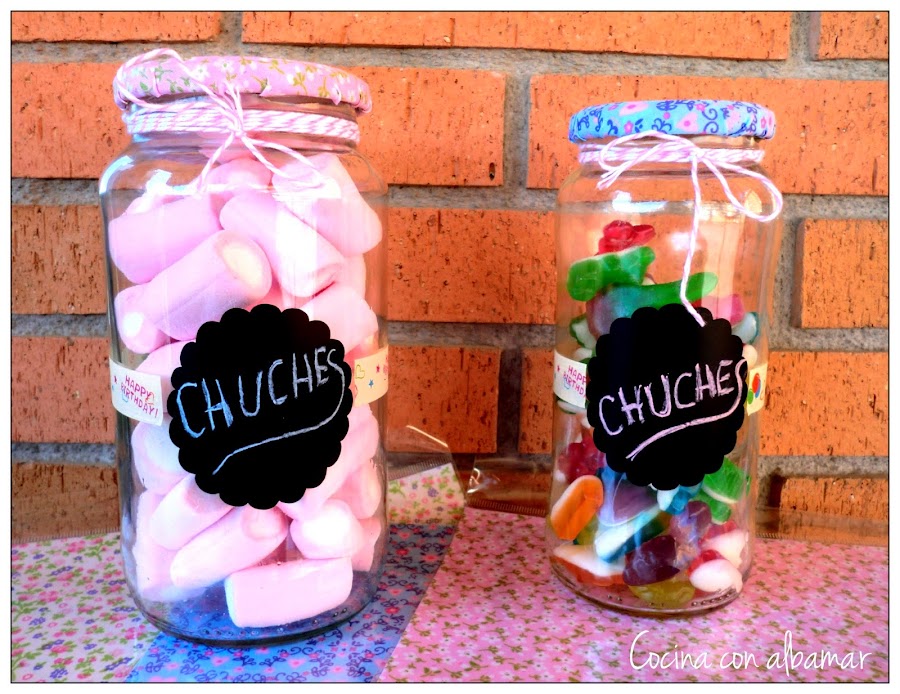 Rellenamos de golosinas o galletas y ya tenemos unos simples tarros reciclados (o nuevos) completamente molones.
