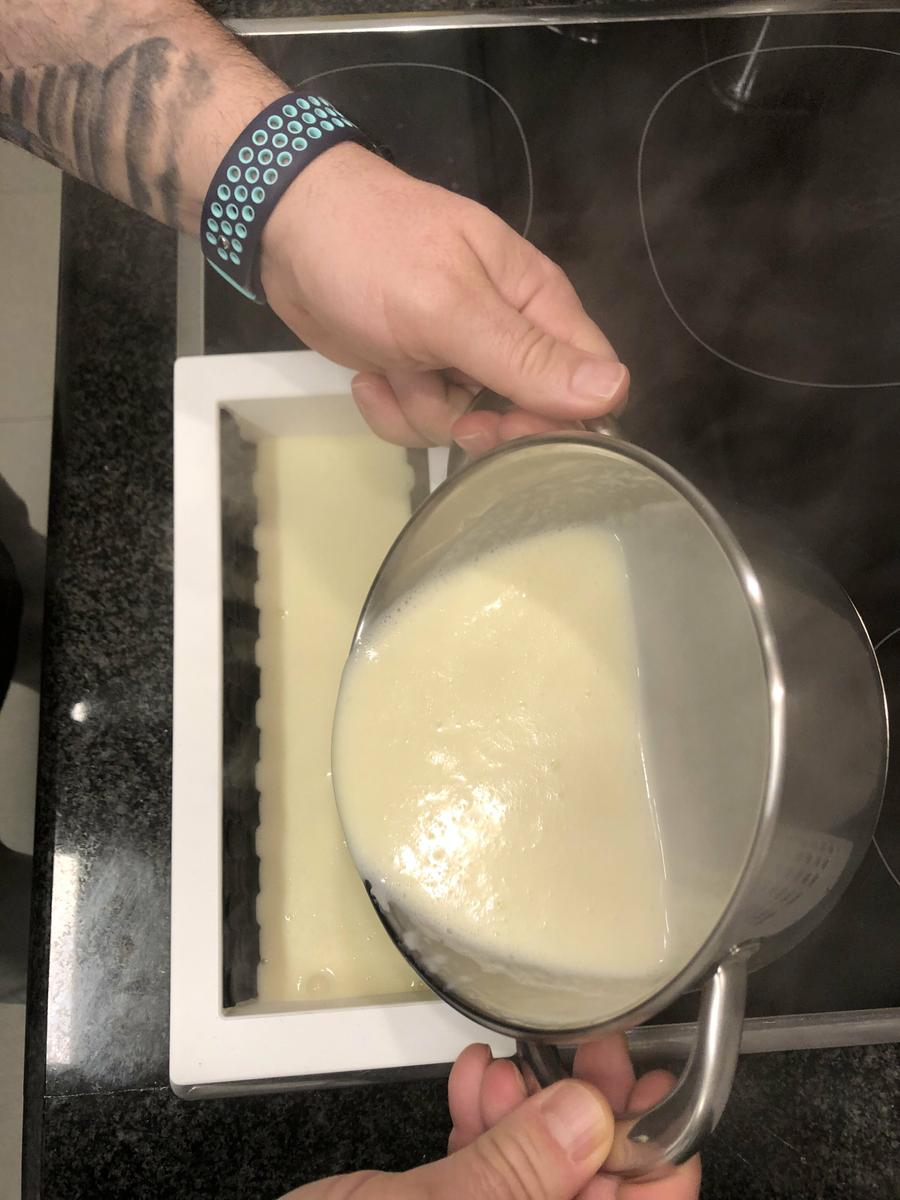 Seguimos removiendo hasta que empiece a hervir, que retiraremos y en pasaremos al molde en el que vayamos a preparar la tarta.