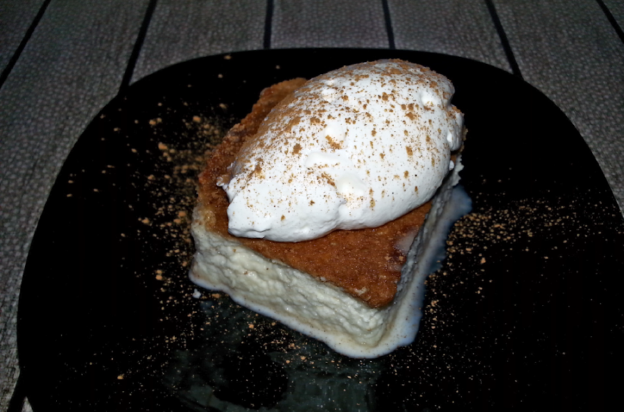 Vertimos esta mezcla sobre el bizcocho frio y dejamos reposar un rato en la nevera.